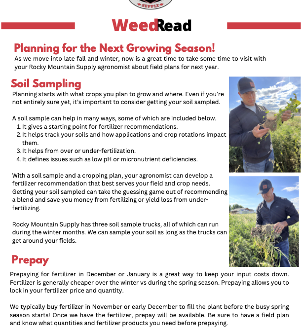 In November’s issue of the WeedRead, we dive into planning for the next growing season, soil sampling, prepay, and more. Read below to learn more!